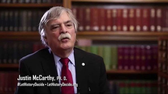 “Sunucu daha sonra,Kentucky de Loisville Üniversitesinde Orta Doğu Tarihçisi Doçent Profesör Justin McCarty ye döndü ve hemfikir olup olmadığını sordu. McCarthy,Ermenilerin gerçekleri sunma yöntemindeki endişeyi dile getirdi. Sayıların önemli olduğunu savundu ve 2 milyon müslumanın çatışmada hayatlarını kaybettiklerini açıkladı.Ne oldusa herkesin acı çektiği bir Halk problemi idi, özellikle iki taraftanda şavaş da savaşmak istemeyen köylülere oldu. McCarth,doğrulanabilinir gerçekler ile ilgilendiğini ve Osmanlı İmparatorluğunda Ermenileri yok etmek için kasıtlı bir politikayı gösteren hiç bir kanıt olmadığını farketdiğini söyledi. McCarth’ye göre 600,000 Ermeni açlık, Kolera, Tifo, Tifus ve açıkça cinayet den mahvolmuşdu, bunların hepsi 2 milyon Müslüman’nın da hayatını almışdi.”