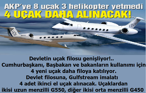 AKP iktidarına 8 uçak 3 helikopter yetmedi 4 uçak daha alınacak!