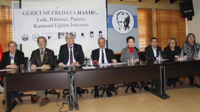 Eğitim, kadın ve öğrenci örgütleri, Milli Eğitim Bakanlığı’nın (MEB) açıkladığı yeni müfredat taslağına karşı bir araya gelerek basın açıklaması yaptı. Sekiz örgüt adına basın açıklamasını okuyan Eğitim-İş İstanbul 4 Nolu Şube Başkanı Zekeriya Çakmak, askıya çıkarılan müfredatın bir karşı devrim girişimi olduğunu ve Türkiye’yi geriye götüreceğini söyledi. Zekeriya Çakmak, derslerden evrim teorisinin çıkarılmasının bilime karşıt bir girişim, Atatürk’ten söz edilmemesinin ise Türkiye karşıtı bir tutum olduğunu vurguladı. Çakmak özetle şunları söyledi: “Bu program incelendiği zaman şunları görüyoruz: Atatürk ve Türk milletinden bahsedilmiyor. Ulus bilinci yok sayılıyor, bunun yerine tarikat ve cemaatler öne çıkarılıyor. Biyoloji ders programından evrim teorisi ve Darwin çıkarılıyor. Eski programdaki ‘Atatürk ilkelerine ve inkilaplarına aykırı ifadelere yer verilmemelidir’ ifadesi kaldırılıyor. Cumhuriyet devrimiyle kazanılan bütün haklar sorgulanıyor. Türkiye Cumhuriyeti’nin darbelerle anılan bir kimliğe büründürüldüğü görülmektedir. Bu program, cumhuriyet eğitimini ve kurumlarını ortadan kaldırma girişimidir. Buna karşı bütün gücümüzle mücadele edeceğimizi buradan haykırıyoruz. Müfredatı reddediyoruz. Karşı devrim girişimlerini savuşturacağız.”